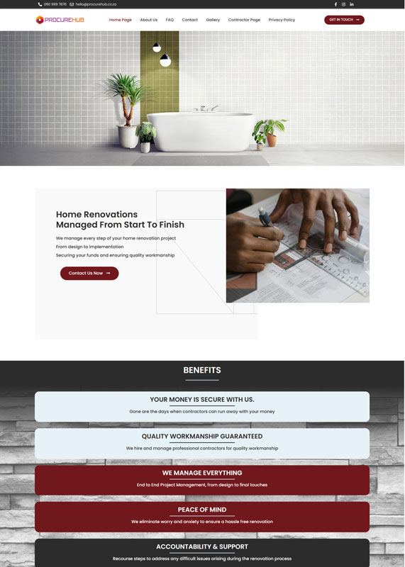 A South African home renovation project management platform that connects homeowners with contractors through end-to-end project coordination, emphasizing trust-based service delivery and seamless workflows.